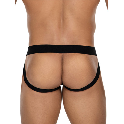 Jockstrappen er laget av en eksklusiv blanding av 60% vegansk skinn og 40% nylon som gjør den både pustende og slitesterk. Fronten er avtagbar og lar din partner komme til godsakene uten store hinder. Matte, sorte knapper og O-ringer setter prikken over i-en på et stilfullt design. Bruk den som den er eller under klærne - Jockstrap C4M er perfekt til både fest og hverdag!