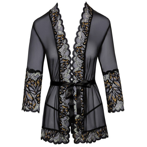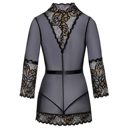 Kimonoen er laget av delikat powernet og utsøkte blonder, og gir deg en følelse av luksus som er vanskelig å motstå.