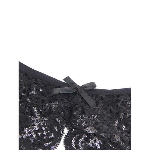 Trusen er dekorert med en søt liten sløyfe i front for å gi et lekent preg, samtidig som åpningene på siden og i skrittet tilfører et hetere og mer utfordrende uttrykk.