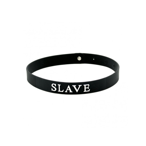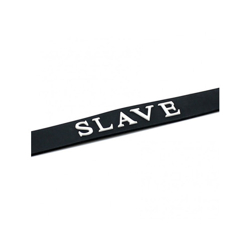 Collar i silikon med teksten SLAVE uthevet i hvit skrift.