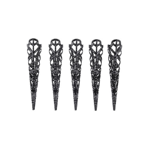 Du får fem fingerspisser i én størrelse som passer de fleste hender. Bruk alle på én hånd for maksimal effekt, eller del dem mellom begge hender og lek deg frem til akkurat det trykket og tempoet som tenner dere mest. De avrundede, dekorerte tuppene gir både myk og skarp kontakt – fra øm teasing til sensuell straff.