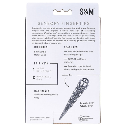 Gjør deg klar for å oppdage sanselek på et helt nytt nivå. Med Sensory Fingertips fra Sex & Mischief forvandler du hendene dine til verktøy for pirring, utforsking og kontroll. Enten du vil kjæle, klø eller pirre – disse metalltuppene gir deg en frekk og intens utvidelse av sanseleken!