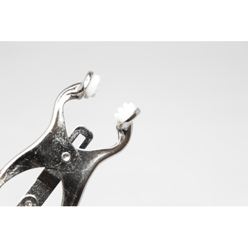 Enkle brystklyper med gummubelegg som enkelt kan justeres med skruene på siden. Du bestemmer selv hv..