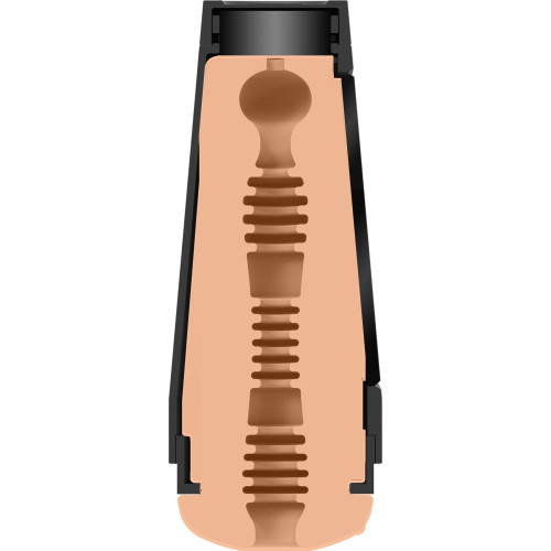 Denne masturbatoren har et delvis åpent punkt på siden hvor du kan klemme inn for å få en trangere følelse.