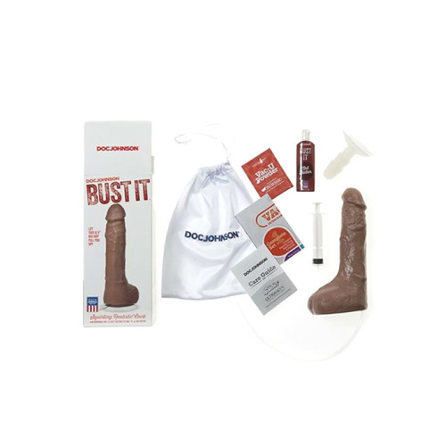 Gjør deg klar for en realistisk opplevelse som tar leken til et nytt nivå med Bust It Sprutedildo! Denne imponerende dildoen på 22 cm har et realistisk utseende og følelsen av en ekte, erigert penis. Deilige, teksturerte detaljer og anatomisk korrekte former pryder denne dildoen - og sammen med sprutefunksjonen tilbyr den en heftig opplevelse.