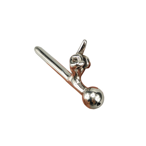 Lang penisplug med kuler og bøy på enden. Pluggen er hul så veske kan komme gjen..