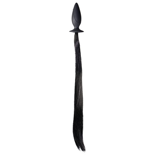 Svart buttplugg i silikon, med hestehale av polyester.