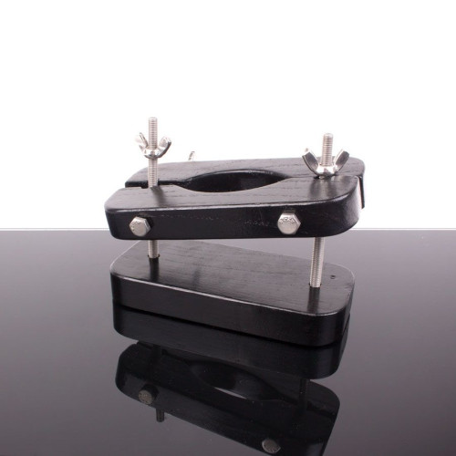 Ball buster er svært enkel å justere ved å skru på vingemutrene i hver ende, alt fra pirrende til knusende press. Selve Ball Busteren er laget av tre med et sort lakktrekk.