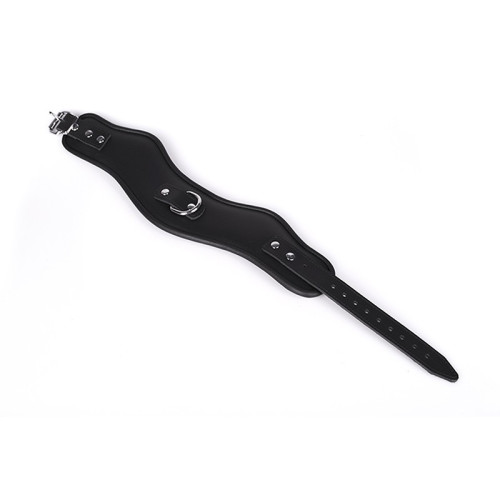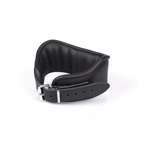 Tags: collar, lær, bredt, komfort, polstret, justering, spenner, d-ring, bdsm, bondage kiotos, kraftig, luxe, sort