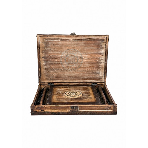 Tjenesteplaten er laget av eldre New Zealand-furu som gjør den både solid og luksuriøs. Alle hengsler og hasper har blitt stemplet og maskineret for å sikre levetid og sikkerhet under frekk lek.