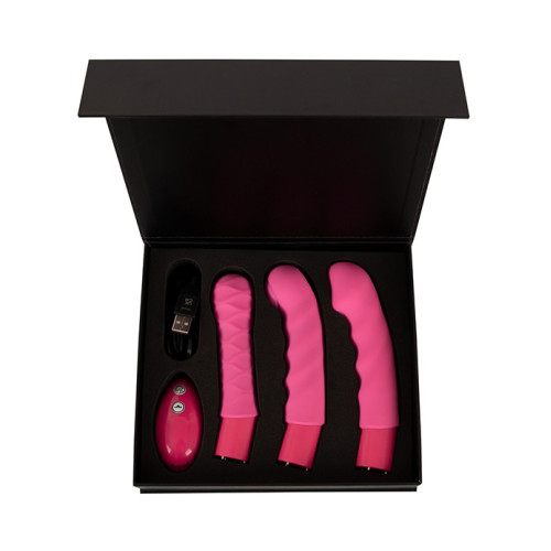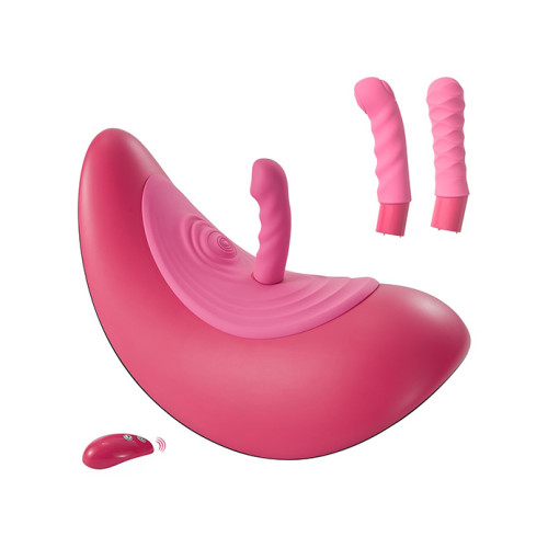 Setet har et integrert vibropanel som pulserer rytmisk mot vulva og klitoris med 13 ulike thump-funksjoner. Samtidig kan du feste én av de tre utskiftbare silikonvibratorene for dypere stimulering: en som støter, en som vibrerer og en som gir presise tapping-impulser.