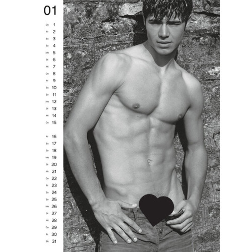 Denne pin-up-kalenderen byr på 12 estetiske, sort-hvitt bilder av kjekke menn i sensuelle, men sofistikerte poseringer.