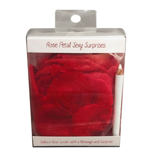 Rose Petals Sexy Surprise er den perfekte romantiske gaven til Valentine’s Day, jul, jubileer eller enhver anledning hvor du ønsker å overraske din kjære. Settet inkluderer over 100 roseblader som du kan skrive på med den medfølgende hvite blyanten. Skriv ett ord per blad og lag en sti av roseblader som fører til en overraskelse. Den sexy overraskelsen kan være en gave, et romantisk bad for to, eller kanskje bare deg selv, naken.