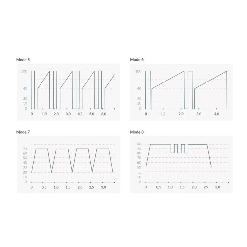 Hvert E-stimulerings program er laget for å skape en ny og pirrende sanseopplevelse. Hvert press på e-stim knappen tar deg til neste program. Vær oppmerksom på at rytmeprogrammene (2 og 4) trenger 3 sekunder for å nå den høyeste intensiteten på programmet. Elektroleker stimulerer nerveendingene og gir deg en helt ny opplevelse. Kanskje du blir hektet?