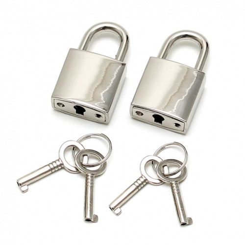 Sett med 2 skinnende metall hengelås og 4 nøkler.