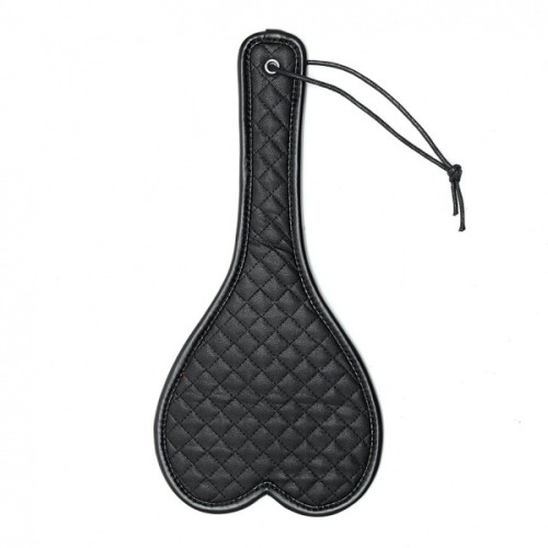 Liten paddle av lær med håndtak av plast. Dobbelsidig hardt lær, så den er ..