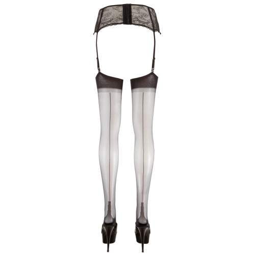 Le Desir - Strømper med strømpeholder i netting og blondemønster - Sort
