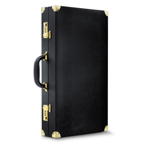 Det slitesterke veganske skinnvesken med håndtak har fungerende metallkombinasjonslåser for å sikre ditt privatliv, noe som gjør det perfekt for reiser og oppbevaring hjemme. Innvendig finner du bind for øynene, silikon gagball med pustehull, paddle, håndleddscuffs, ankelcuffs, halsband med bånd og en en-hastighets bulletvibrator. Den sofistikerte sløyfe-designet bringer skjønnhet til soverommet, og den er perfekt for både nybegynnere og middels spillere. Etuiet og gjenstandene inni er laget av ftalatfritt vegansk lær og nikkelfritt metall.