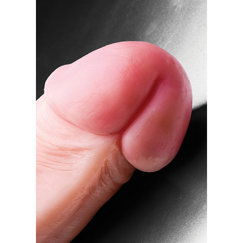 Dildoen har også en sugekopp som sitter godt på glatte overflater.